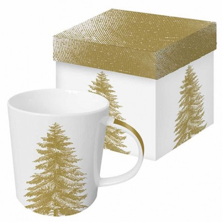 Porcelánový hrnek se zlatým potiskem stromku v dárkové krabici.