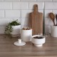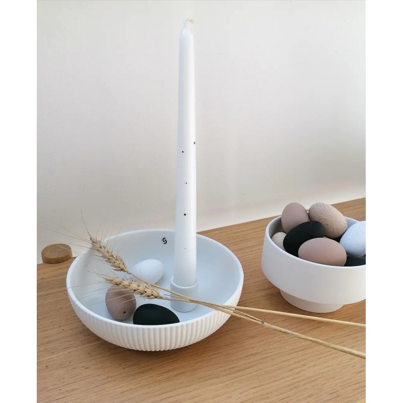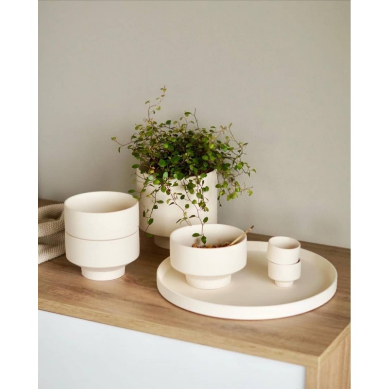 K dispozici v béžové a bílé barvě. Kiaby je řada keramických výrobků, která se skládá jak ze svícnů, tak i z váziček, misek a květináčů.