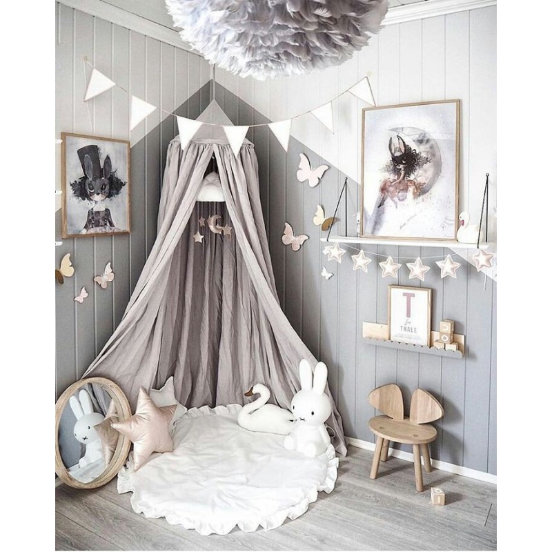 Vytvořte svým dětem kouzelný hrací koutek, ve kterém si budou moci číst svou oblíbenou pohádkovou knížku nebo jen tak odpočívat! Hrací podložku můžete umístit pod baldachýn a vytvořit tak krásné a útulné místo v dětském pokoji.