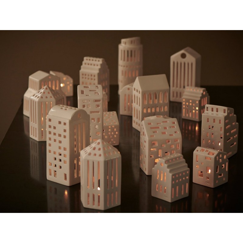 Celá kolekce Urbania od ikonické značky Kähler je inspirována designem městských budov. Každý domeček je vyrobený z přírodního jílu v bílé barvě a následně je na něj nanesena průhledná glazura.