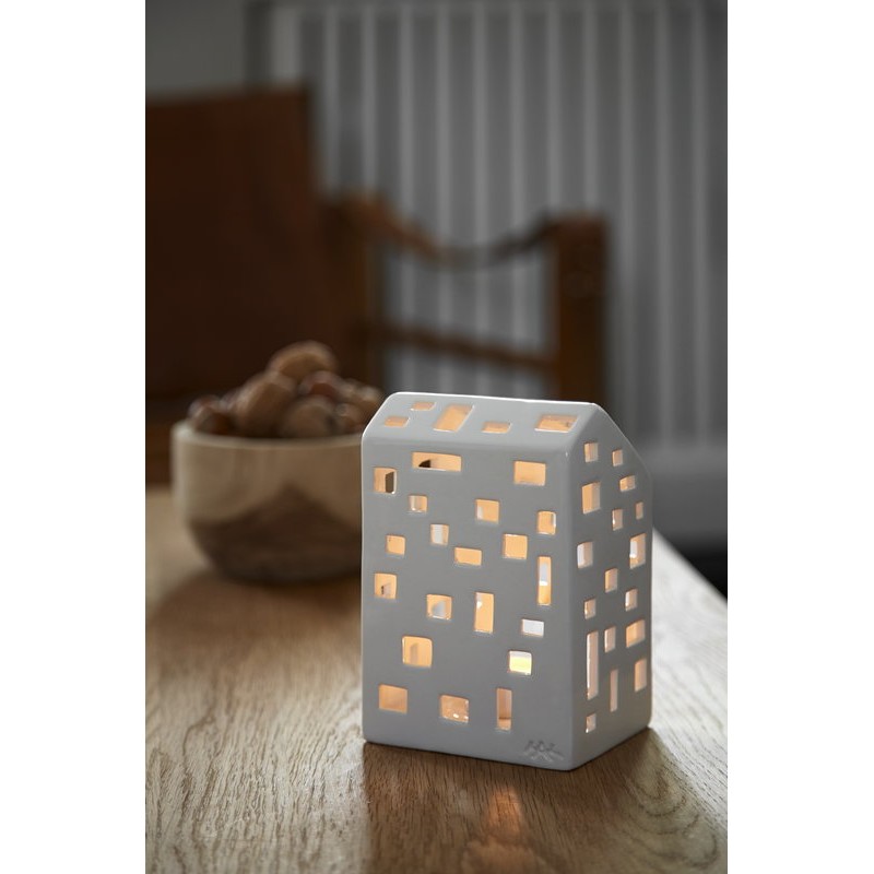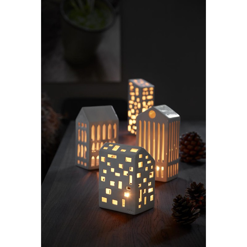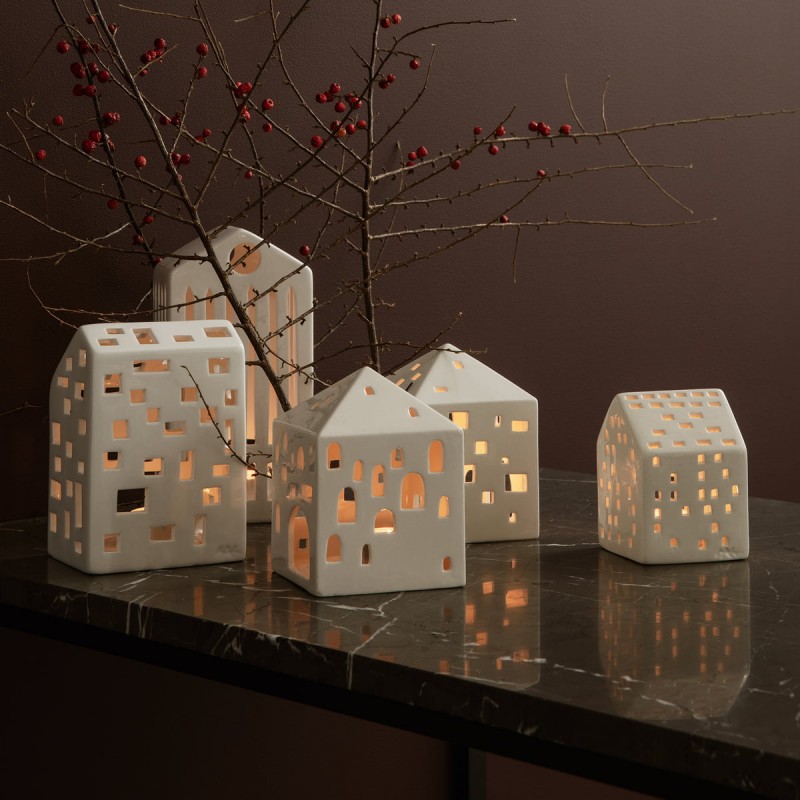 Celá kolekce Urbania od ikonické značky Kähler je inspirována designem městských budov. Každý domeček je vyrobený z přírodního jílu v bílé barvě a následně je na něj nanesena průhledná glazura.