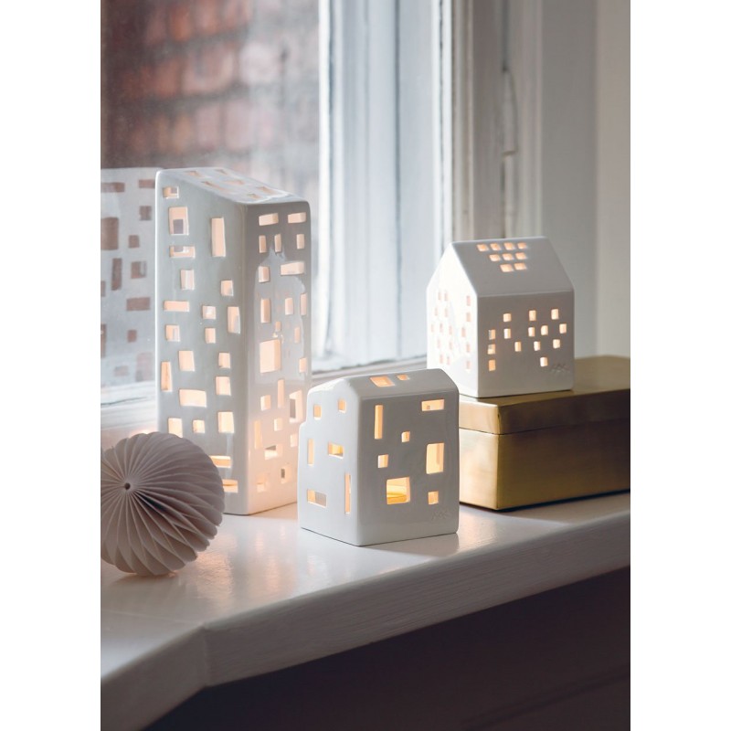 Celá kolekce Urbania od ikonické značky Kähler je inspirována designem městských budov. Každý domeček je vyrobený z přírodního jílu v bílé barvě a následně je na něj nanesena průhledná glazura.
