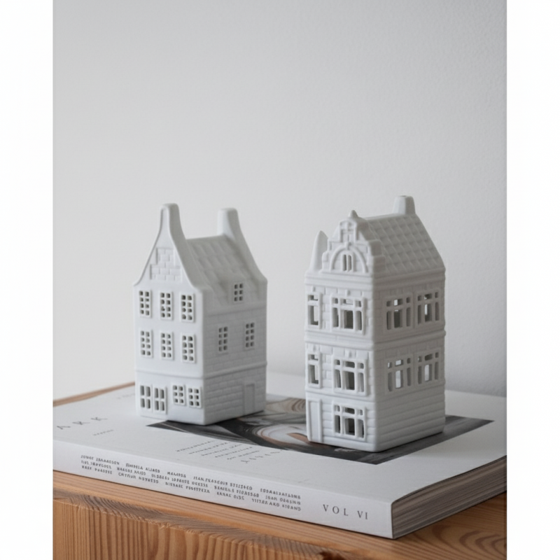 Porcelánový svícen domeček Canal house z dílny nizozemské značky Klevering