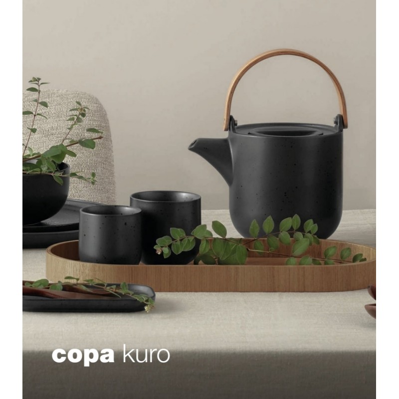 Minimalistická porcelánová konvice na čaj s dřevěným madlem od značky ASA.