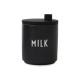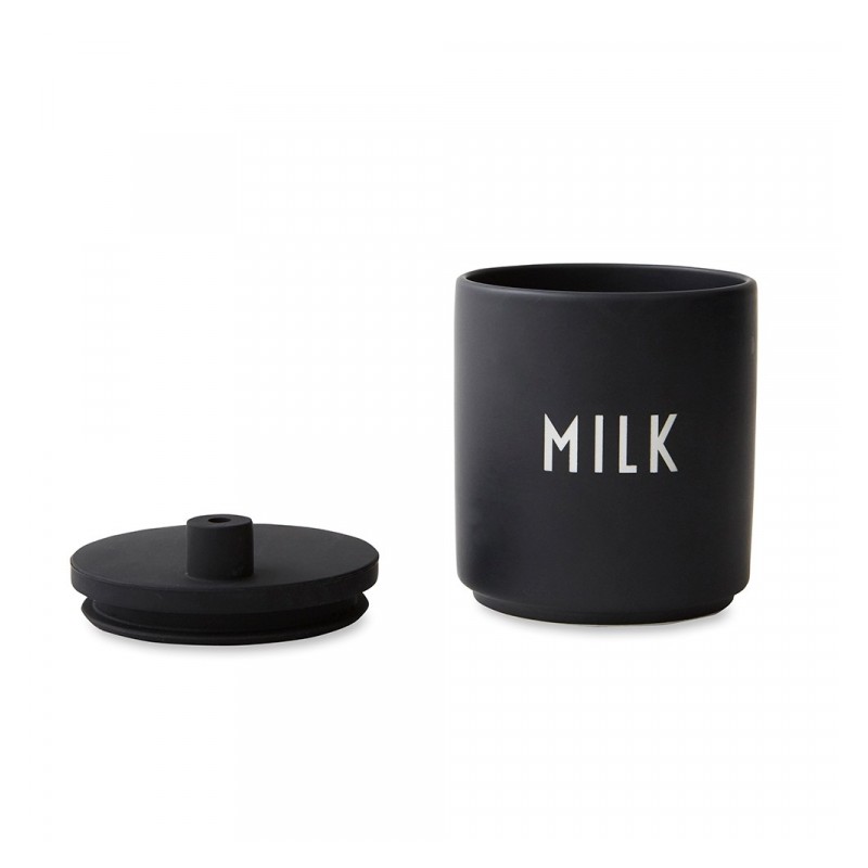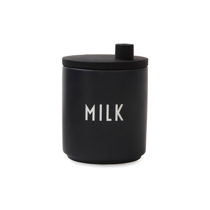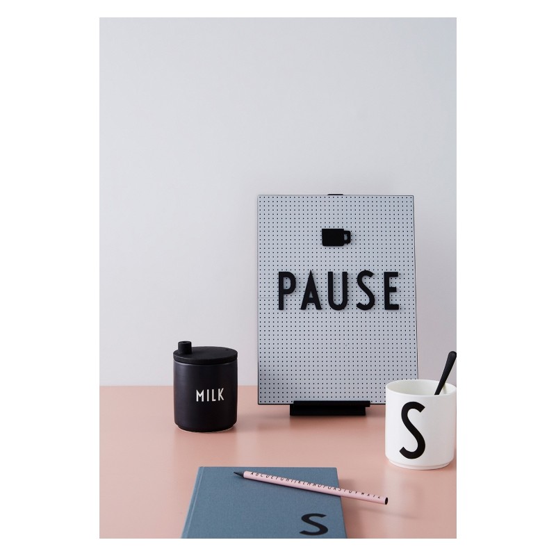 Typografická porcelánová mléčenka a hrnek v jednom od dánské značky Design letters.