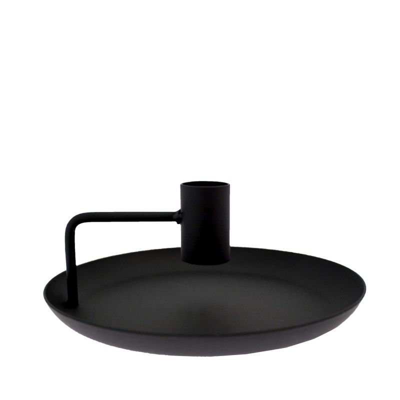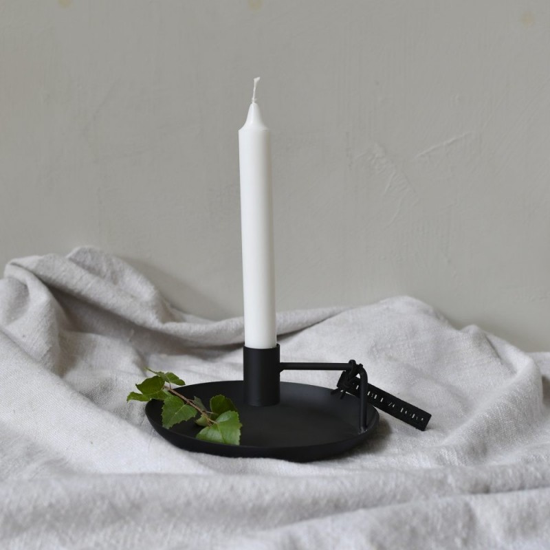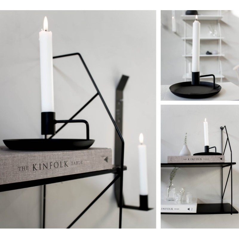 Černý kovový svícen v minimalistickém designu z dílny švédských návrhářů.