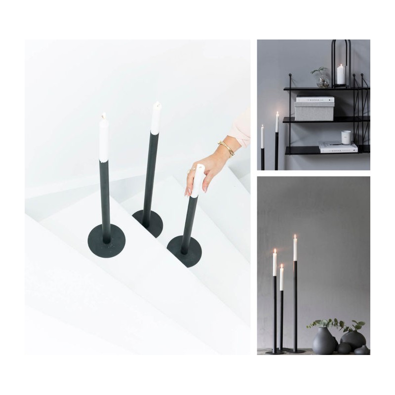 Kovový podlahový svícen v minimalistickém designu z dílny švédských návrhářů. / Různé rozměry