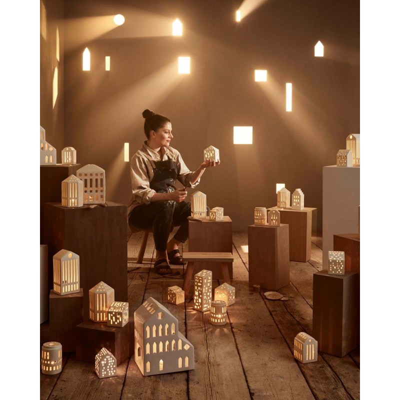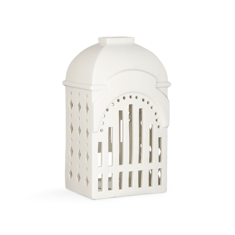 Celá kolekce Urbania od ikonické značky Kähler je inspirována designem městských budov. Každý domeček je vyrobený z přírodního jílu v bílé barvě a následně je na něj nanesena průhledná glazura.