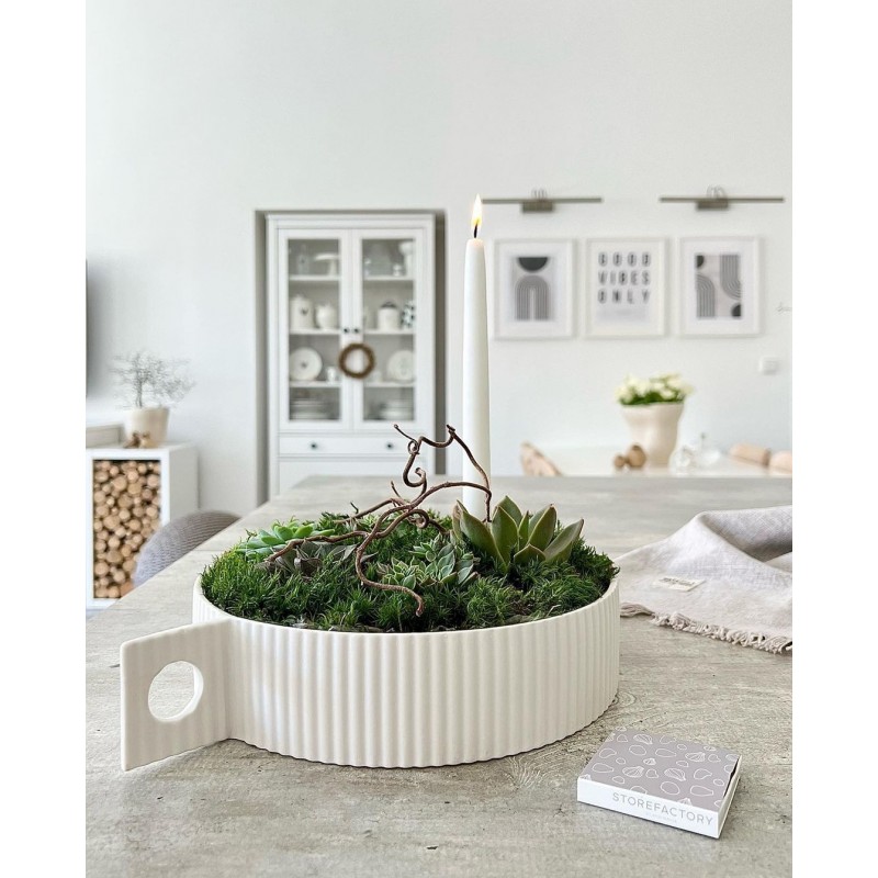 Veškerá keramika Storefactory je matná a neošetřená, a stala se ochrannou známkou společnosti Storefactory. Je také přirozené, že v ručně vyráběné keramice mohou být malé tečky nebo jamky.