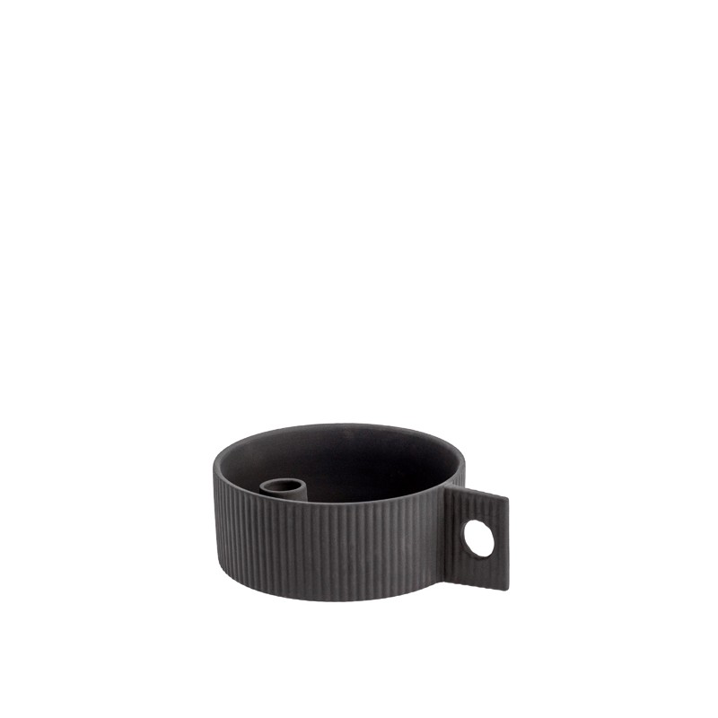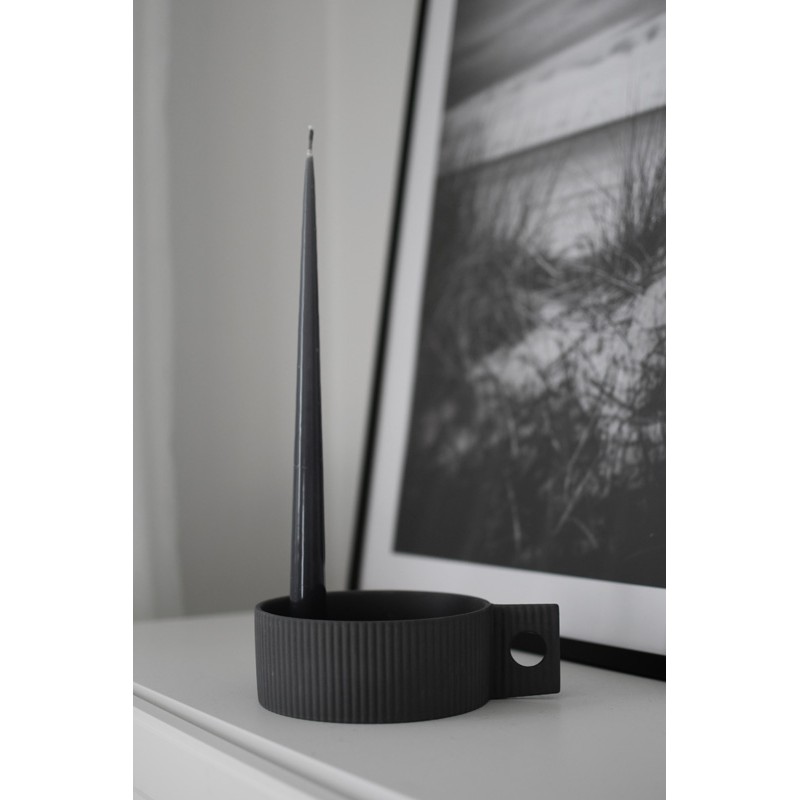 Vnější stranu zdobí plastické vertikální proužky spolu s designovým držákem, který svícnu dodává naprosto jedinečný vzhled.