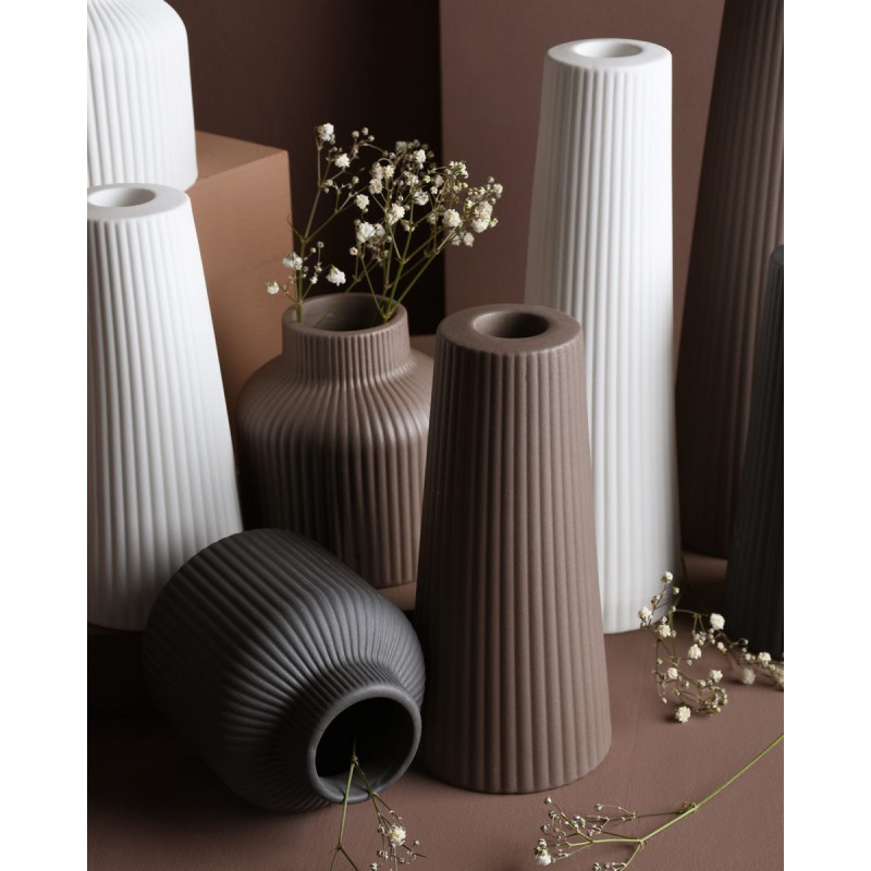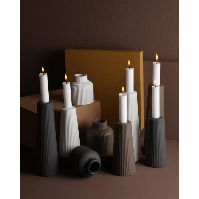 Keramický svícen s jemným vroubkováním z dílny švédských návrhářů