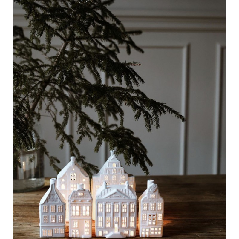Porcelánový svícen domeček Canal house z dílny nizozemské značky Klevering