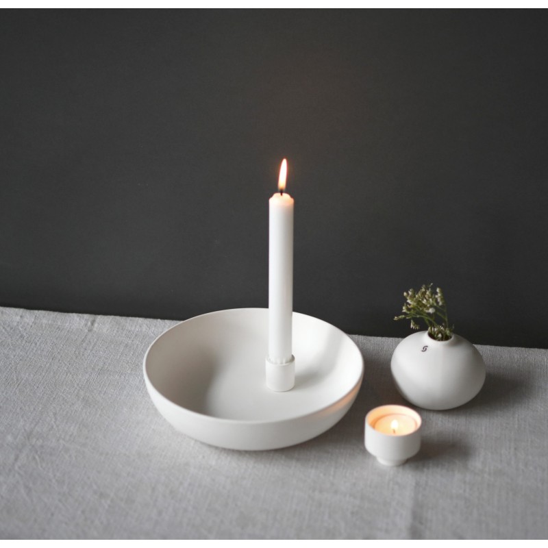Tento keramický svícen má neomezené možnosti variací pro svůj styling. Dekorovat jej můžete podle ročního období. Disponuje praktickou mističkou, kterou můžete naplnit ořechy, šiškami, ozdobit květinami, větvičkami nebo jinými drobnostmi. Váš styling dodá svícnu vždy originální a jedinečný vzhled.