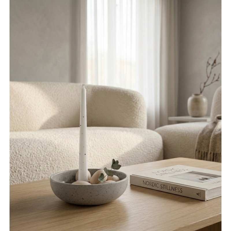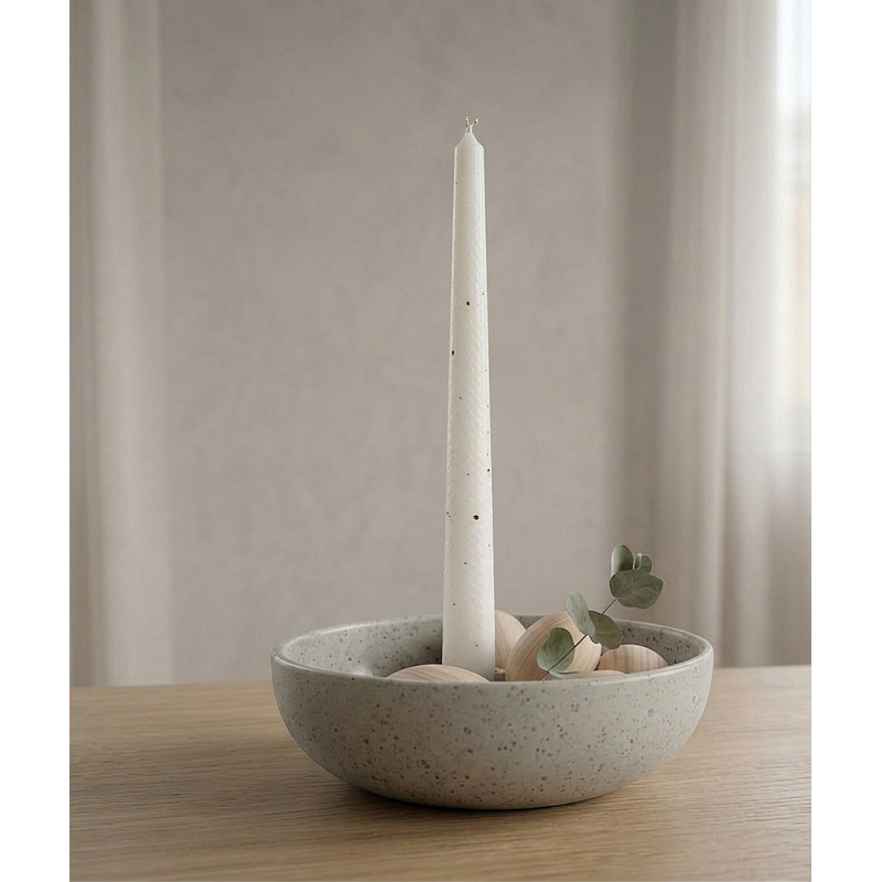 Tento keramický svícen má neomezené možnosti variací pro svůj styling. Dekorovat jej můžete podle ročního období. Disponuje praktickou mističkou, kterou můžete naplnit ořechy, šiškami, ozdobit květinami, větvičkami nebo jinými drobnostmi. Váš styling dodá svícnu vždy originální a jedinečný vzhled.
