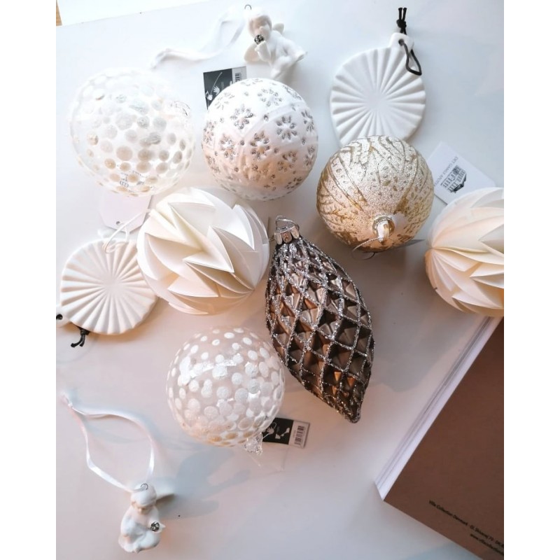 Něžná vánoční baňka z čirého skla, která vynikne na každém stromku, ale i zavěšená na větvičce nebo v okně.