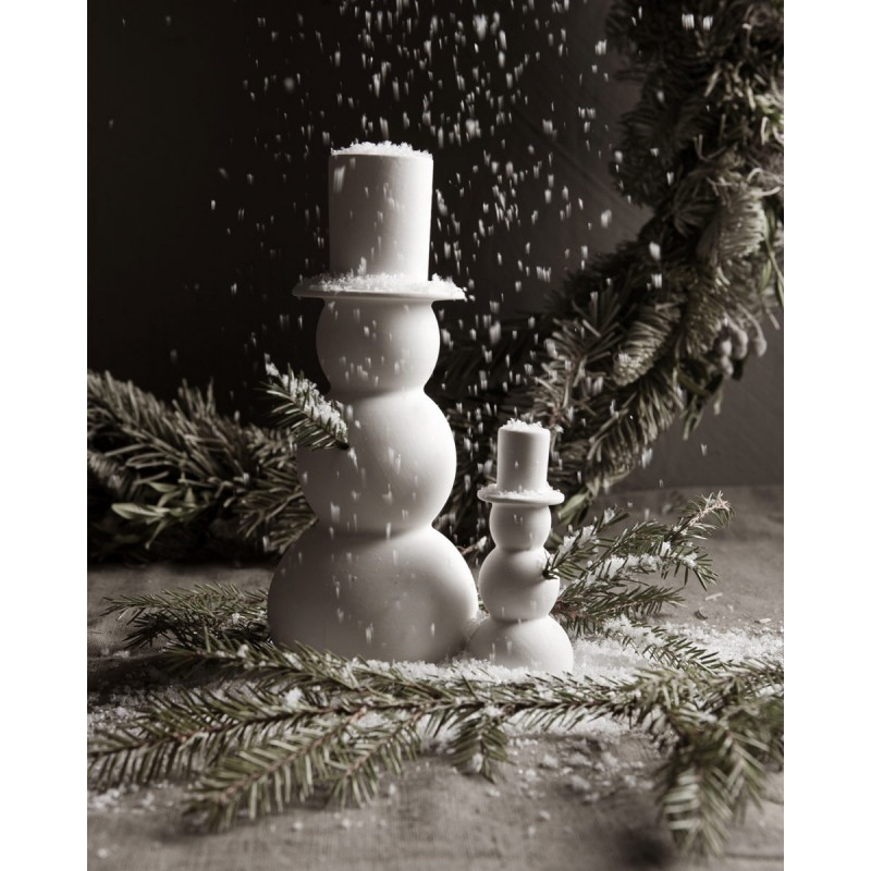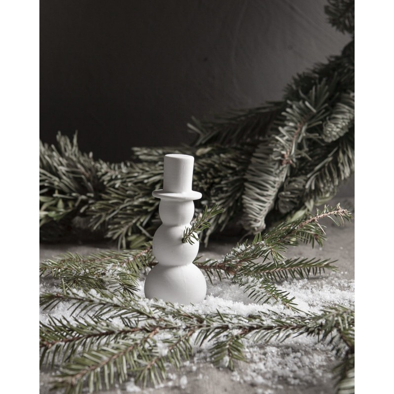 Keramická vánoční dekorace sněhuláka v minimalistickém designu z dílny švédských návrhářů.