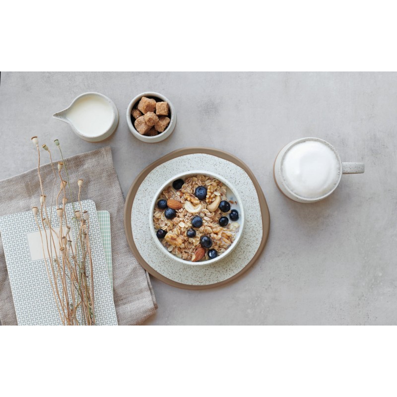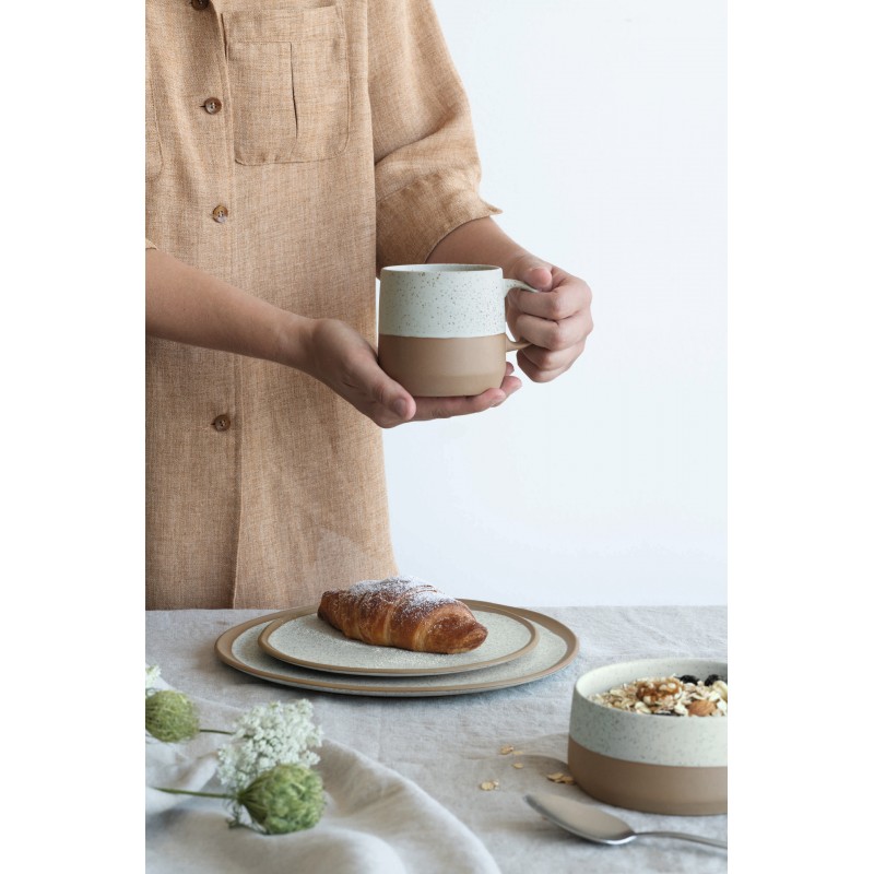 Talíře z kolekce Caja mají matný hladký povrch se zrnitým detailem a každý kus je jedinečným originálem. Vyrábí se ručně z kameniny v terakotové barvě a inspiraci severem rozhodně nezapřou.