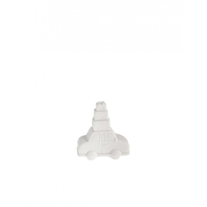 Keramická vánoční dekorace autíčka s dárečkem v minimalistickém designu z dílny švédských návrhářů.