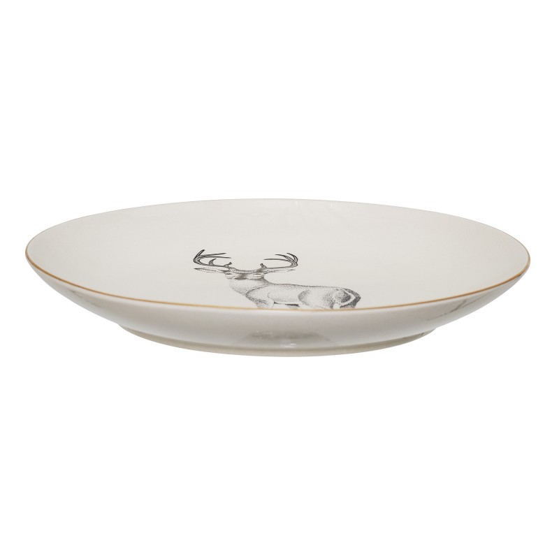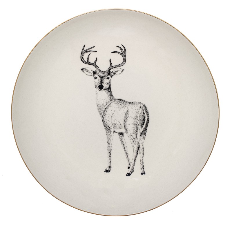 Kameninový talíř s vánočním motivem jelena a se zlatým lemováním od dánské značky Bloomingville.
