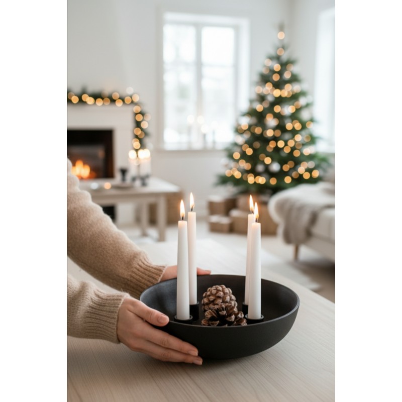 Svícen je vyroben z keramiky s jemně lesklou glazurou, která mu dodává sofistikovaný vzhled. Nadčasová černá barva je klasika, která vždy okouzlí. Skvěle ladí s různými styly interiéru a dodá prostoru hloubku a šmrnc.
