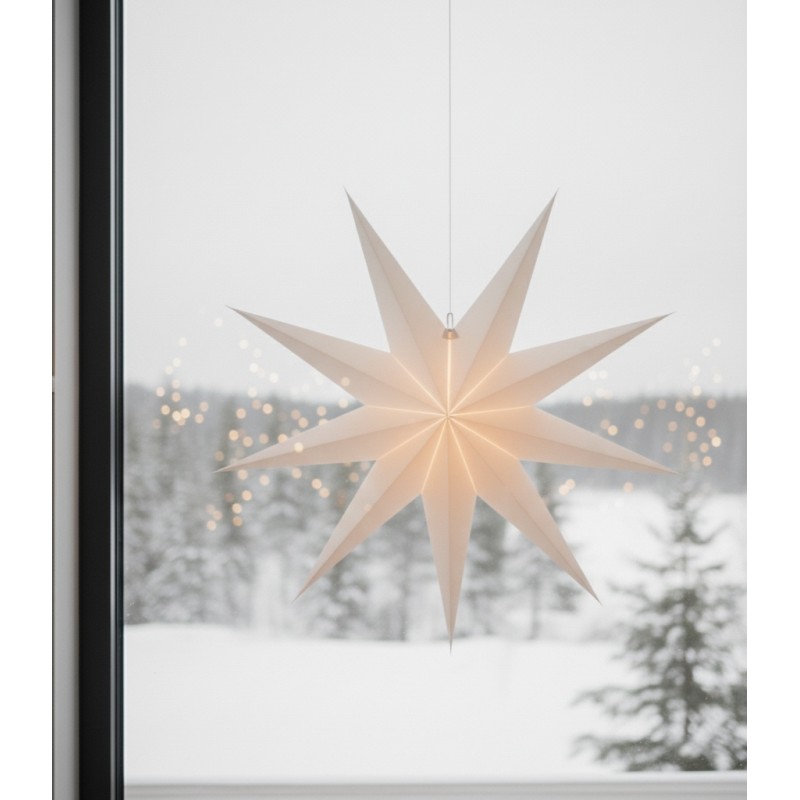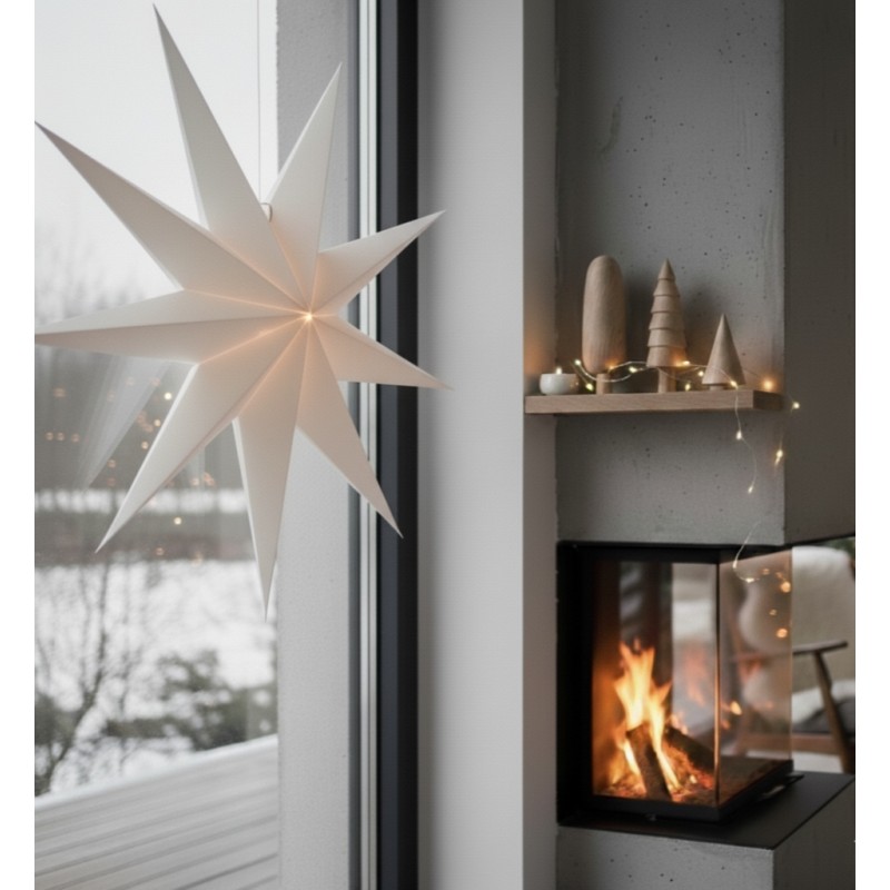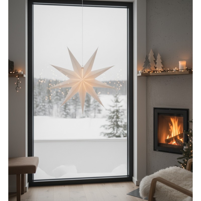 Vánoční devíticípá papírová hvězda v bílém provedení o průměru 60 cm od značky House doctor.