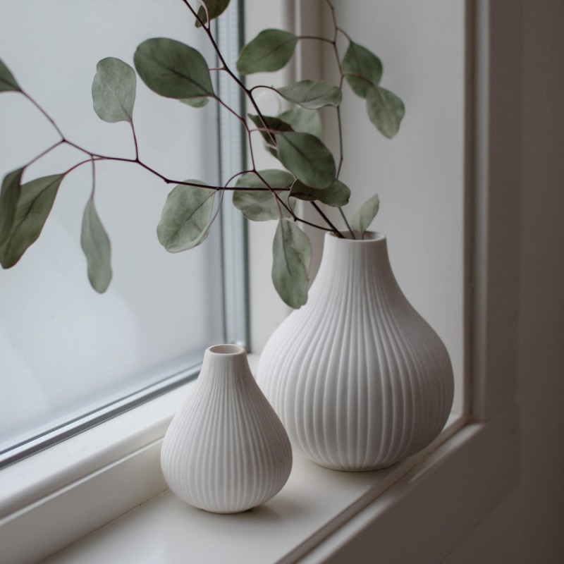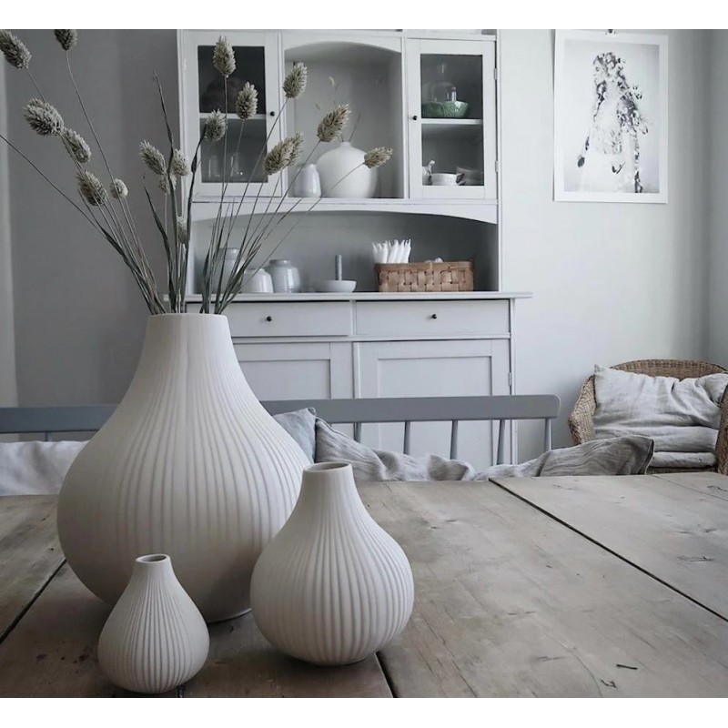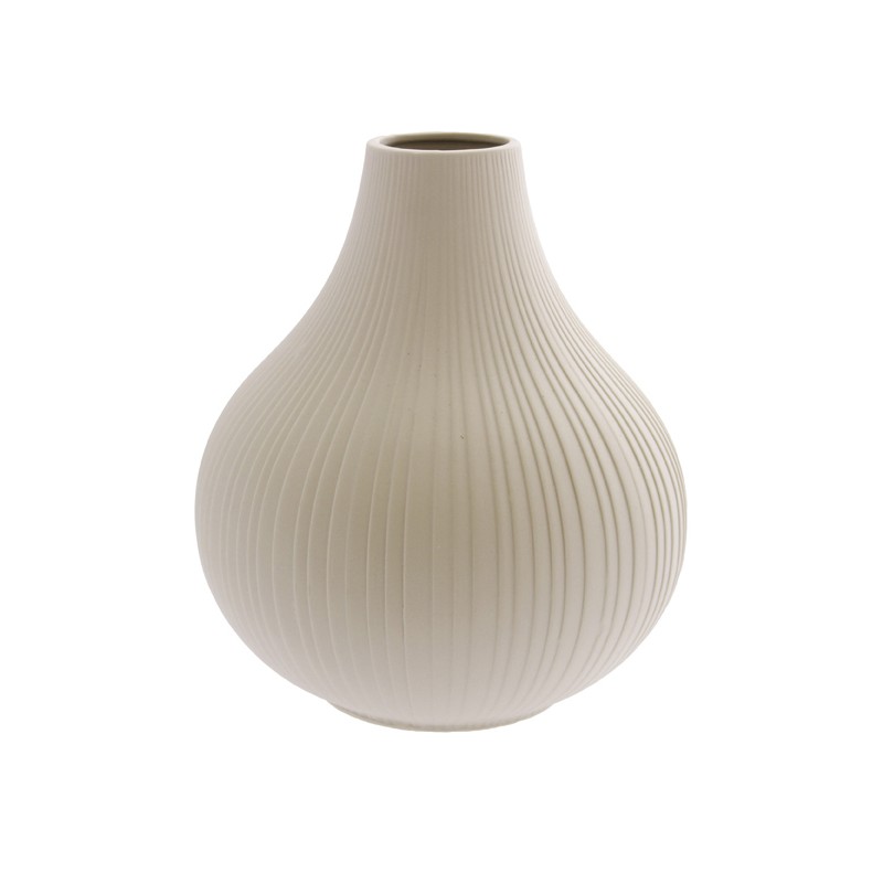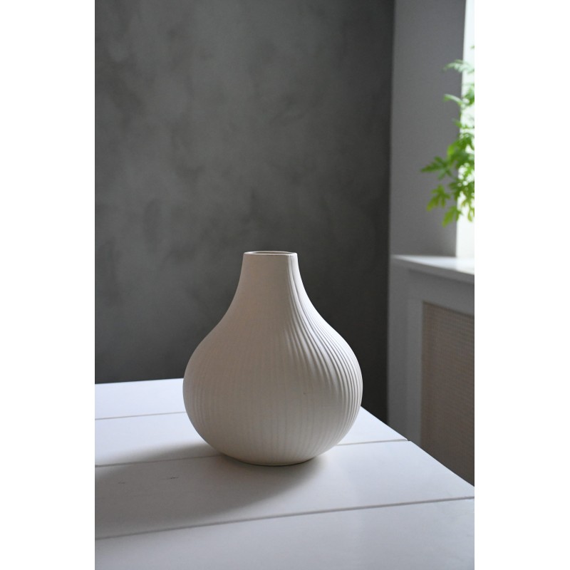 Krásná keramická váza ve velikosti XL s jemnými vertikálními drážkami. Naplňte ji lučním kvítím nebo si vytvořte aranžmá se sušenými travinami.